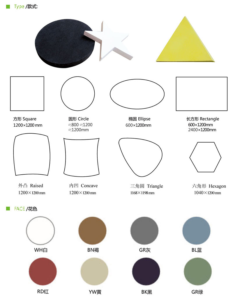 采用同密度的玻纤板,表面复合装饰玻纤毡制成,背面覆玻纤毡,四边做封边处理。此板两边开槽、两边平直,安装后表面遮住龙骨面,使明架变成暗架,